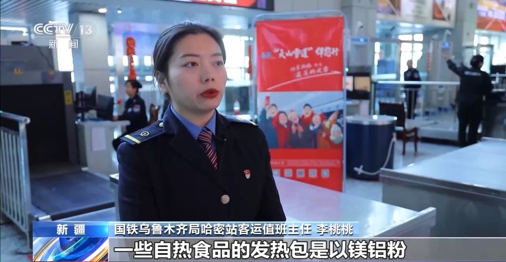 国铁乌鲁木齐局哈密站客运值班主任 李桃桃:一些自热食品的发热包是以镁铝粉为主要的组成原材料的。这样一种材料在遇水后会产生剧烈的化学反应,易引起人身伤害。因此,在选购自热食品的时候,一定要仔仔细细地观察外包装上的加热包材料,避免在乘车时遇到不必要的麻烦。
